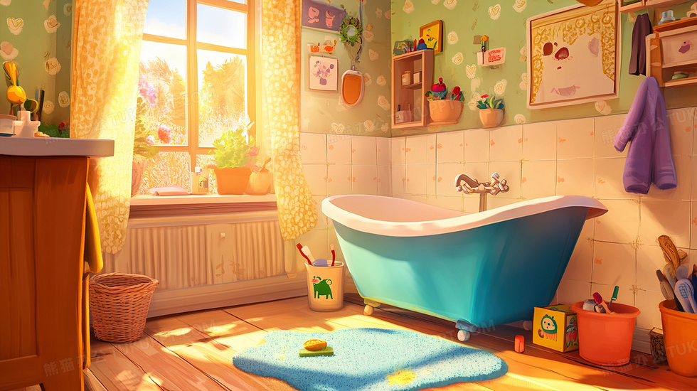 本作品内容为家居装饰厕所内摆放的浴缸插画, 格式为 jpg, 大小3 MB, 图片尺寸为2912 x 1632, 源文件无水印, 欢迎使用熊猫办公。 如认为平台内容涉嫌侵权,可通过邮件:tousu@tukuppt.com提出书面通知,我们将及时处理。