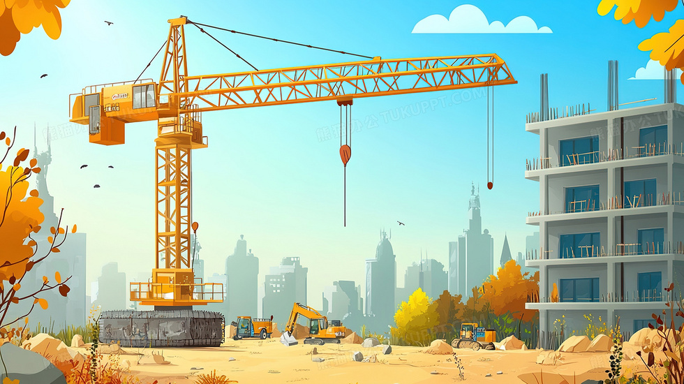 本作品内容为建筑工地吊车施工现场插画, 格式为 jpg, 大小3 MB, 图片尺寸为2912 x 1632, 源文件无水印, 欢迎使用熊猫办公。 如认为平台内容涉嫌侵权,可通过邮件:tousu@tukuppt.com提出书面通知,我们将及时处理。