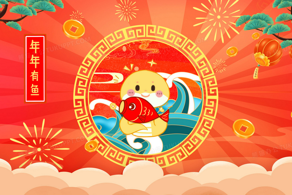 本作品内容为蛇年小蛇年年有鱼插画, 格式为 psd, 大小25 MB, 请使用软件PhotoShop(CC)打开, 源文件无水印, 欢迎使用熊猫办公。 如认为平台内容涉嫌侵权,可通过邮件:tousu@tukuppt.com提出书面通知,我们将及时处理。