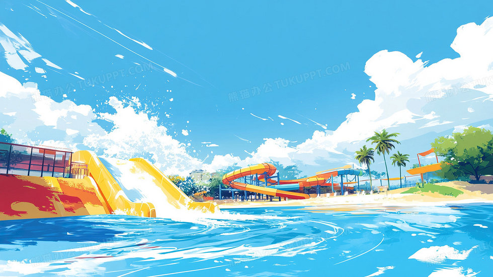 本作品内容为水上乐园儿童乐园游乐场卡通背景, 格式为 jpg, 大小3 MB, 图片尺寸为2912 x 1632, 作品中背景图片无需修改, 源文件无水印,可以直接使用, 欢迎使用熊猫办公。 如认为平台内容涉嫌侵权,可通过邮件:tousu@tukuppt.com提出书面通知,我们将及时处理。