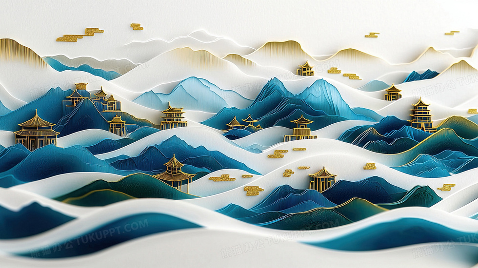 本作品内容为创意国潮风鎏金山水背景, 格式为 jpg, 大小3 MB, 图片尺寸为2912 x 1632, 作品中背景图片无需修改, 源文件无水印,可以直接使用, 欢迎使用熊猫办公。 如认为平台内容涉嫌侵权,可通过邮件:tousu@tukuppt.com提出书面通知,我们将及时处理。