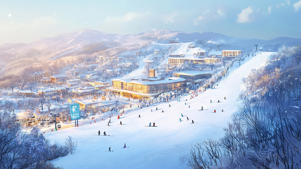 本作品内容为冬季旅游景点亚布力滑雪场插画, 格式为 jpg, 大小4 MB, 图片尺寸为2912 x 1632, 源文件无水印, 欢迎使用熊猫办公。 如认为平台内容涉嫌侵权,可通过邮件:tousu@tukuppt.com提出书面通知,我们将及时处理。