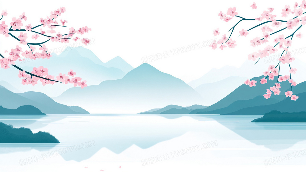 本作品内容为国风桃花山水水彩植物背景, 格式为 jpg, 大小2 MB, 图片尺寸为2912 x 1632, 作品中背景图片无需修改, 源文件无水印,可以直接使用, 欢迎使用熊猫办公。 如认为平台内容涉嫌侵权,可通过邮件:tousu@tukuppt.com提出书面通知,我们将及时处理。