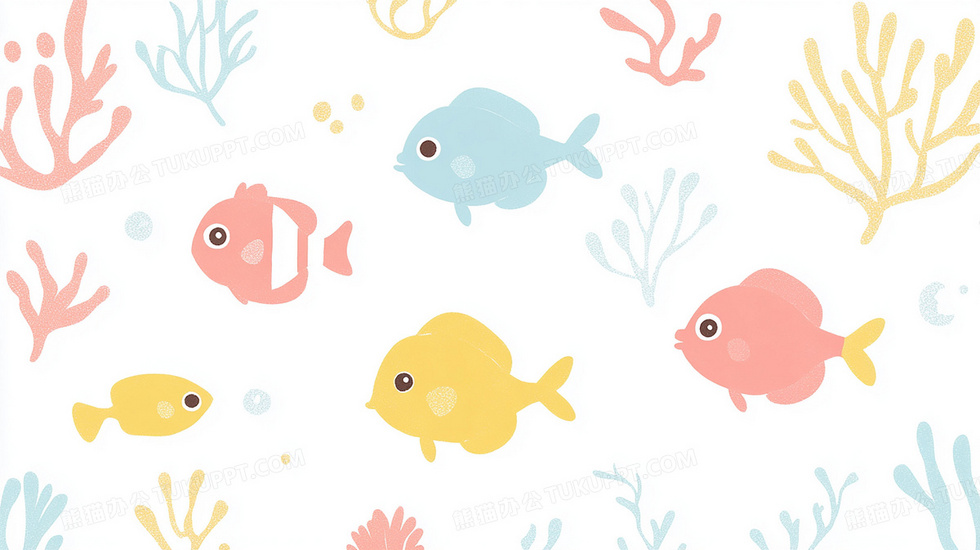 本作品内容为卡通动物小鱼背景, 格式为 jpg, 大小1 MB, 图片尺寸为2912 x 1632, 作品中背景图片无需修改, 源文件无水印,可以直接使用, 欢迎使用熊猫办公。 如认为平台内容涉嫌侵权,可通过邮件:tousu@tukuppt.com提出书面通知,我们将及时处理。