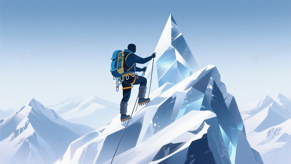 本作品内容为企业视觉雪山攀登者插画, 格式为 jpg, 大小1 MB, 图片尺寸为1664 x 936, 作品中背景图片无需修改, 源文件无水印,可以直接使用, 欢迎使用熊猫办公。 如认为平台内容涉嫌侵权,可通过邮件:tousu@tukuppt.com提出书面通知,我们将及时处理。