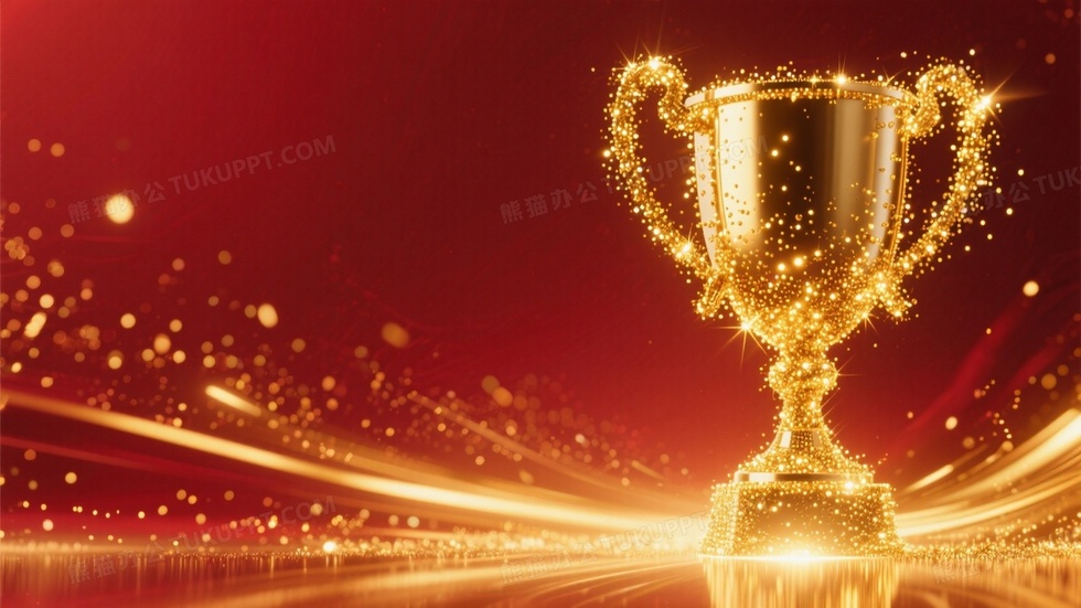 本作品内容为画面右下角是金色粒子组成巨大的奖杯, 格式为 jpg, 大小1 MB, 图片尺寸为1664 x 936, 作品中背景图片无需修改, 源文件无水印,可以直接使用, 欢迎使用熊猫办公。 如认为平台内容涉嫌侵权,可通过邮件:tousu@tukuppt.com提出书面通知,我们将及时处理。