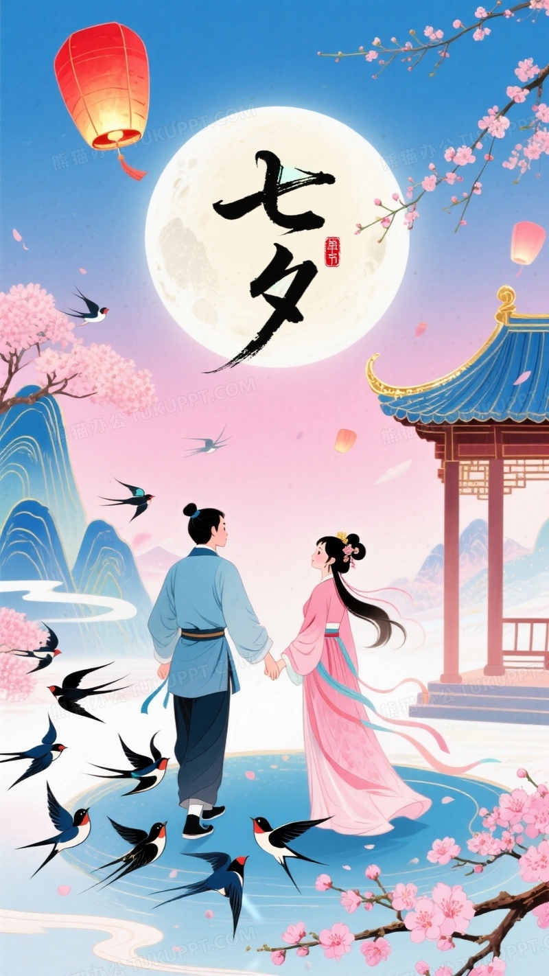 本作品内容为国潮插画风格七夕节主题, 格式为 jpg, 大小1 MB, 图片尺寸为936 x 1664, 源文件无水印, 欢迎使用熊猫办公。 如认为平台内容涉嫌侵权,可通过邮件:tousu@tukuppt.com提出书面通知,我们将及时处理。