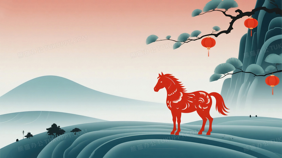 本作品内容为马年红色剪纸生肖马中国风春节背景, 格式为 jpg, 大小5 MB, 图片尺寸为3328 x 1872, 作品中背景图片无需修改, 源文件无水印,可以直接使用, 欢迎使用熊猫办公。 如认为平台内容涉嫌侵权,可通过邮件:tousu@tukuppt.com提出书面通知,我们将及时处理。