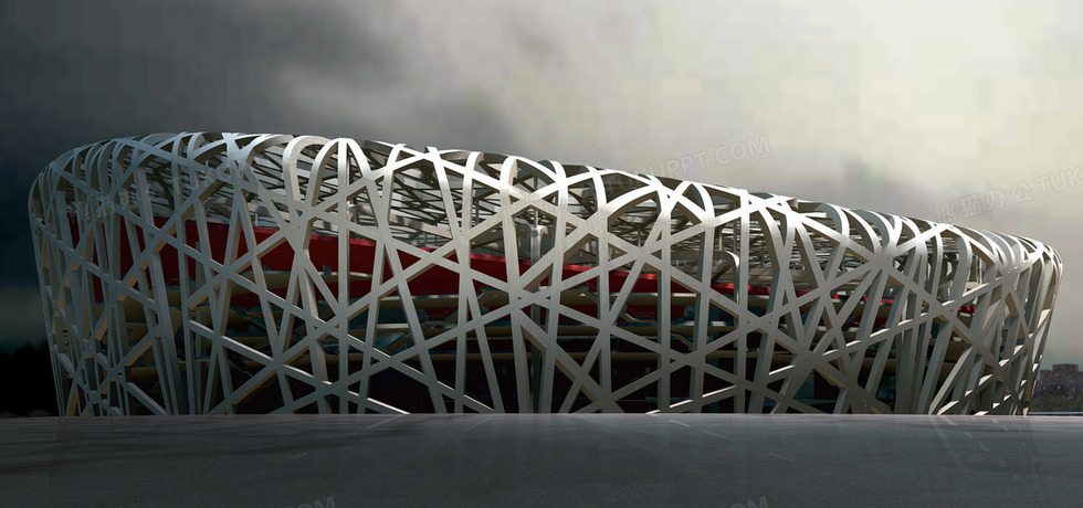 本作品内容为大气鸟巢建筑背景, 格式为 jpg, 图片尺寸为1920 x 900, 作品中背景图片无需修改, 源文件无水印,可以直接使用, 欢迎使用熊猫办公。 如认为平台内容涉嫌侵权,可通过邮件:tousu@tukuppt.com提出书面通知,我们将及时处理。