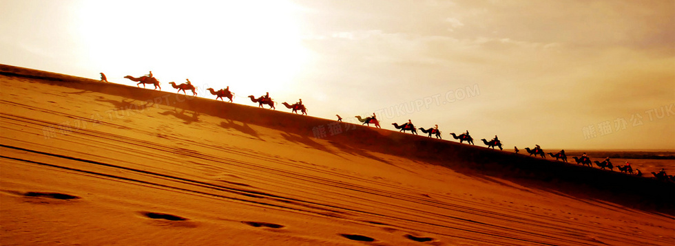 本作品内容为烈日下的沙漠驼队背景, 格式为 jpg, 图片尺寸为1920 x 700, 作品中背景图片无需修改, 源文件无水印,可以直接使用, 欢迎使用熊猫办公。 如认为平台内容涉嫌侵权,可通过邮件:tousu@tukuppt.com提出书面通知,我们将及时处理。