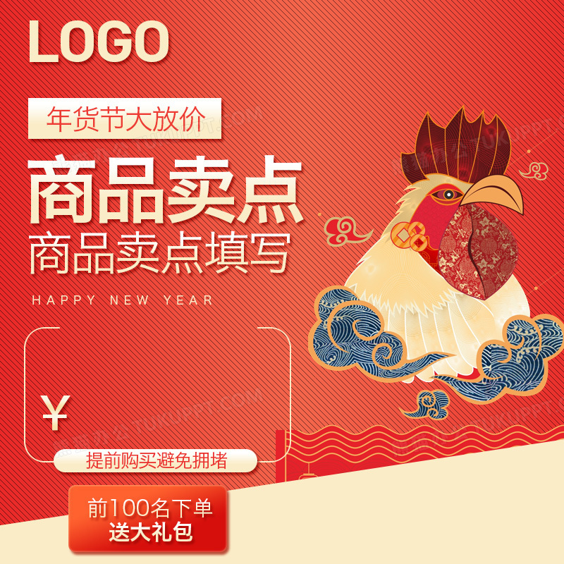 本作品内容为年货大放价PSD分层主图背景素材, 格式为 psd, 图片尺寸为800 x 800, 作品中背景图片无需修改, 源文件无水印,可以直接使用, 欢迎使用熊猫办公。 如认为平台内容涉嫌侵权,可通过邮件:tousu@tukuppt.com提出书面通知,我们将及时处理。