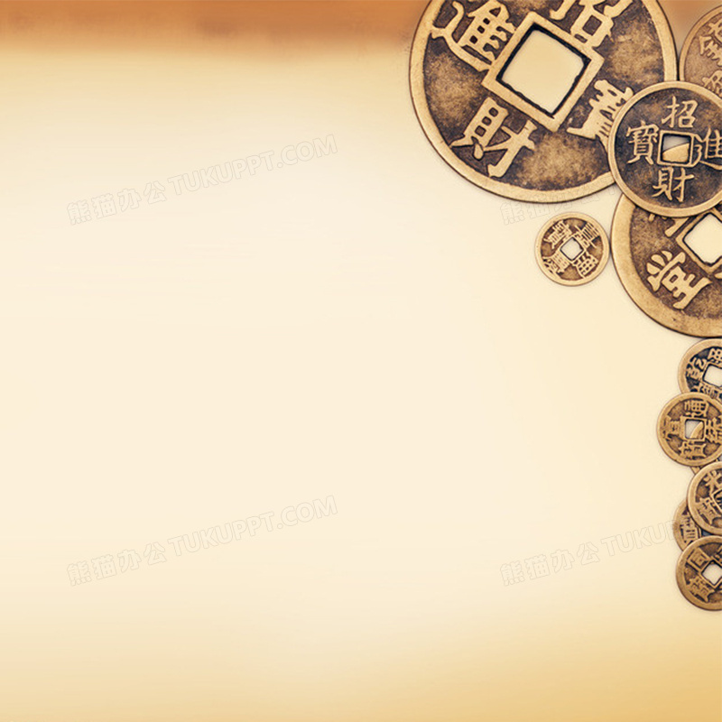 本作品内容为中国风铜钱背景图, 格式为 jpg, 图片尺寸为800 x 800, 作品中背景图片无需修改, 源文件无水印,可以直接使用, 欢迎使用熊猫办公。 如认为平台内容涉嫌侵权,可通过邮件:tousu@tukuppt.com提出书面通知,我们将及时处理。