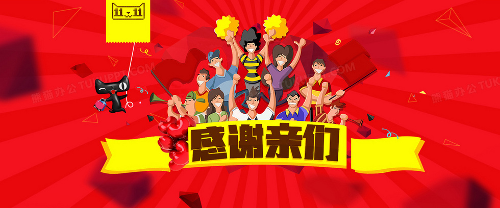 本作品内容为双11狂欢(感谢亲们)背景, 格式为 psd, 图片尺寸为1920 x 800, 作品中背景图片无需修改, 源文件无水印,可以直接使用, 欢迎使用熊猫办公。 如认为平台内容涉嫌侵权,可通过邮件:tousu@tukuppt.com提出书面通知,我们将及时处理。