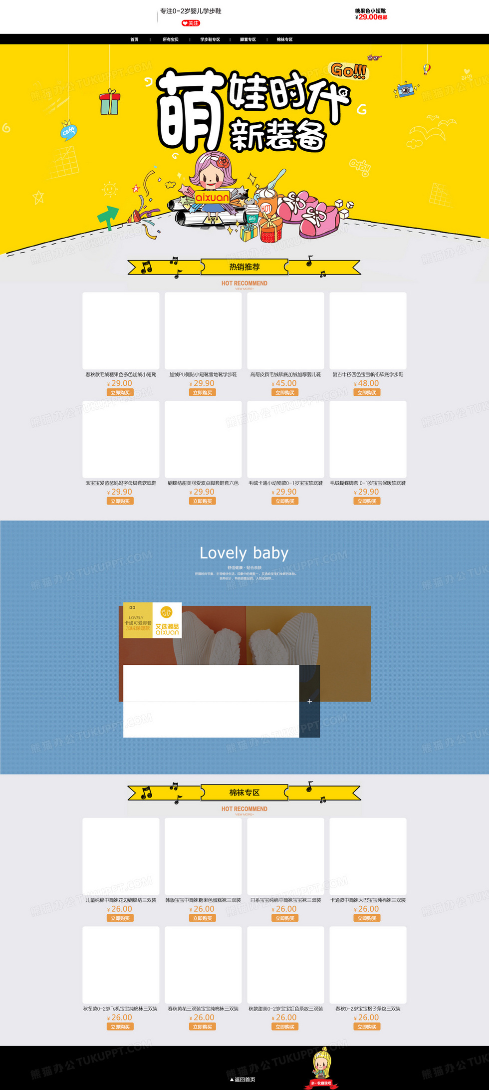 本作品内容为黄色母婴卡通店铺首页背景, 格式为 psd, 图片尺寸为1920 x 4278, 作品中背景图片无需修改, 源文件无水印,可以直接使用, 欢迎使用熊猫办公。 如认为平台内容涉嫌侵权,可通过邮件:tousu@tukuppt.com提出书面通知,我们将及时处理。
