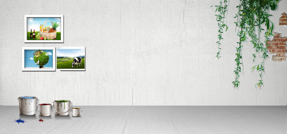 本作品内容为绿色环保壁画油漆背景白色海报banner, 格式为 psd, 图片尺寸为1920 x 900, 作品中背景图片无需修改, 源文件无水印,可以直接使用, 欢迎使用熊猫办公。 如认为平台内容涉嫌侵权,可通过邮件:tousu@tukuppt.com提出书面通知,我们将及时处理。