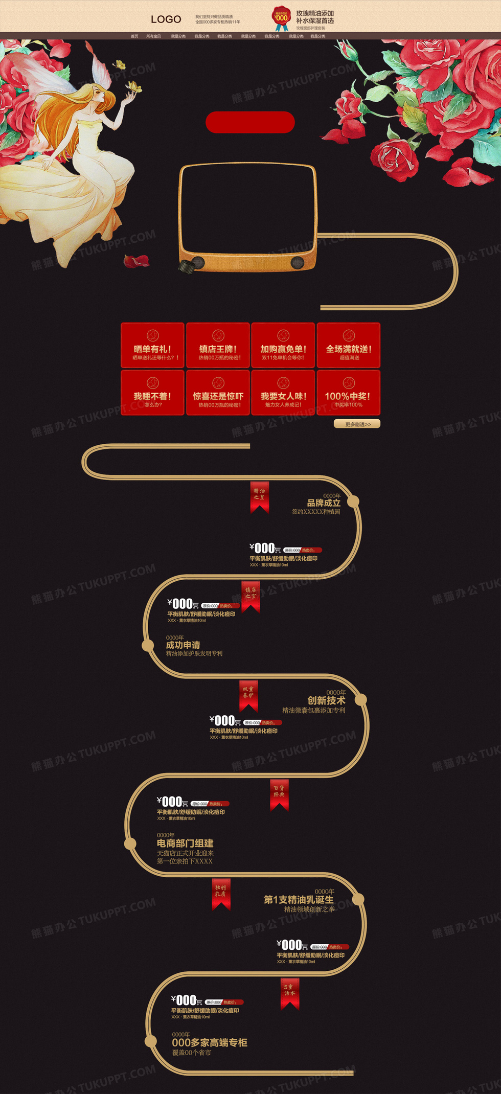 本作品内容为黑色手绘浪漫化妆品店铺首页背景, 格式为 psd, 图片尺寸为1920 x 4192, 作品中背景图片无需修改, 源文件无水印,可以直接使用, 欢迎使用熊猫办公。 如认为平台内容涉嫌侵权,可通过邮件:tousu@tukuppt.com提出书面通知,我们将及时处理。