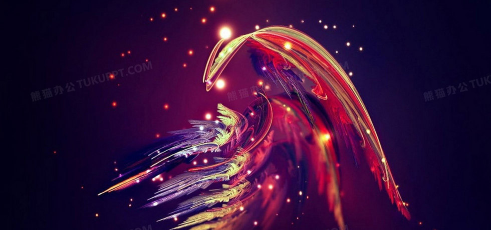 本作品内容为幻彩凤凰背景, 格式为 jpg, 图片尺寸为1920 x 900, 作品中背景图片无需修改, 源文件无水印,可以直接使用, 欢迎使用熊猫办公。 如认为平台内容涉嫌侵权,可通过邮件:tousu@tukuppt.com提出书面通知,我们将及时处理。