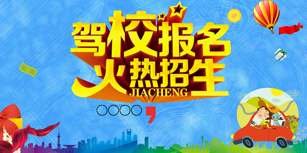 本作品内容为驾校报名海报, 格式为 psd, 图片尺寸为6000 x 3000, 作品中背景图片无需修改, 源文件无水印,可以直接使用, 欢迎使用熊猫办公。 如认为平台内容涉嫌侵权,可通过邮件:tousu@tukuppt.com提出书面通知,我们将及时处理。