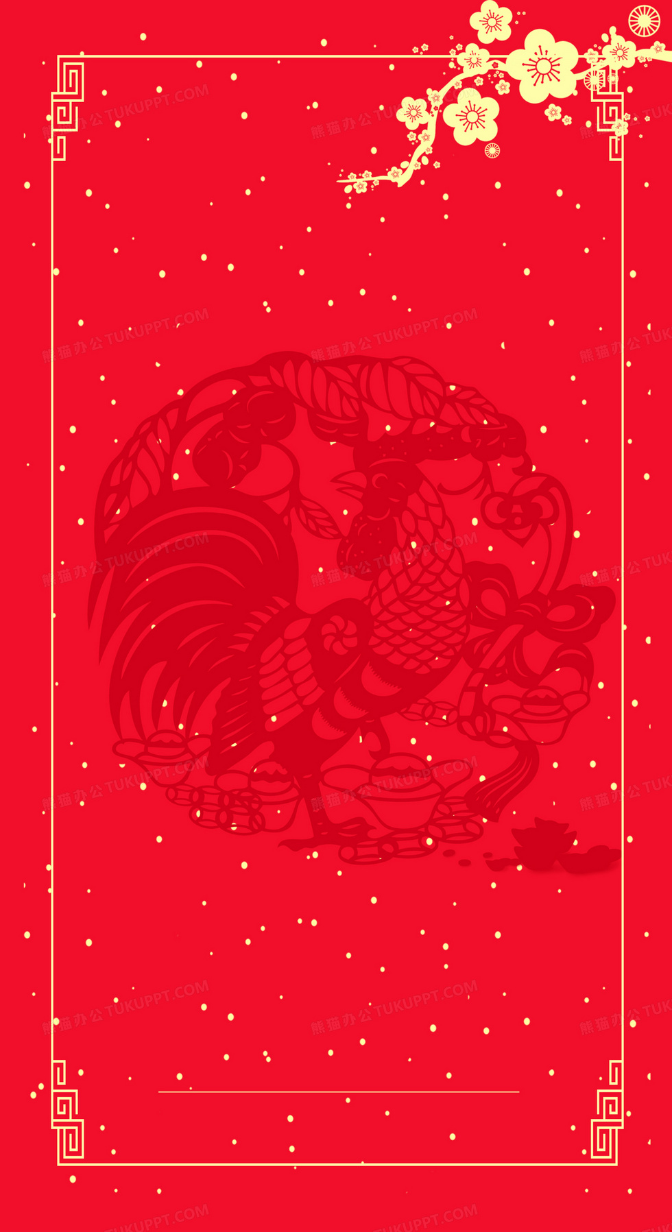 本作品内容为鸡祥如意新春海报背景模板, 格式为 psd, 图片尺寸为2000 x 3666, 作品中背景图片无需修改, 源文件无水印,可以直接使用, 欢迎使用熊猫办公。 如认为平台内容涉嫌侵权,可通过邮件:tousu@tukuppt.com提出书面通知,我们将及时处理。