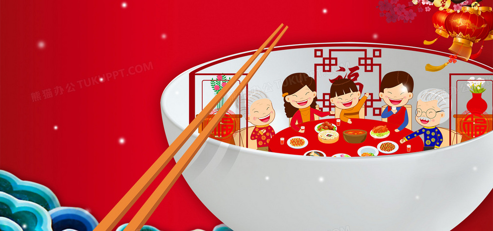 本作品内容为除夕团圆饭海报背景, 格式为 psd, 图片尺寸为1920 x 900, 作品中背景图片无需修改, 源文件无水印,可以直接使用, 欢迎使用熊猫办公。 如认为平台内容涉嫌侵权,可通过邮件:tousu@tukuppt.com提出书面通知,我们将及时处理。