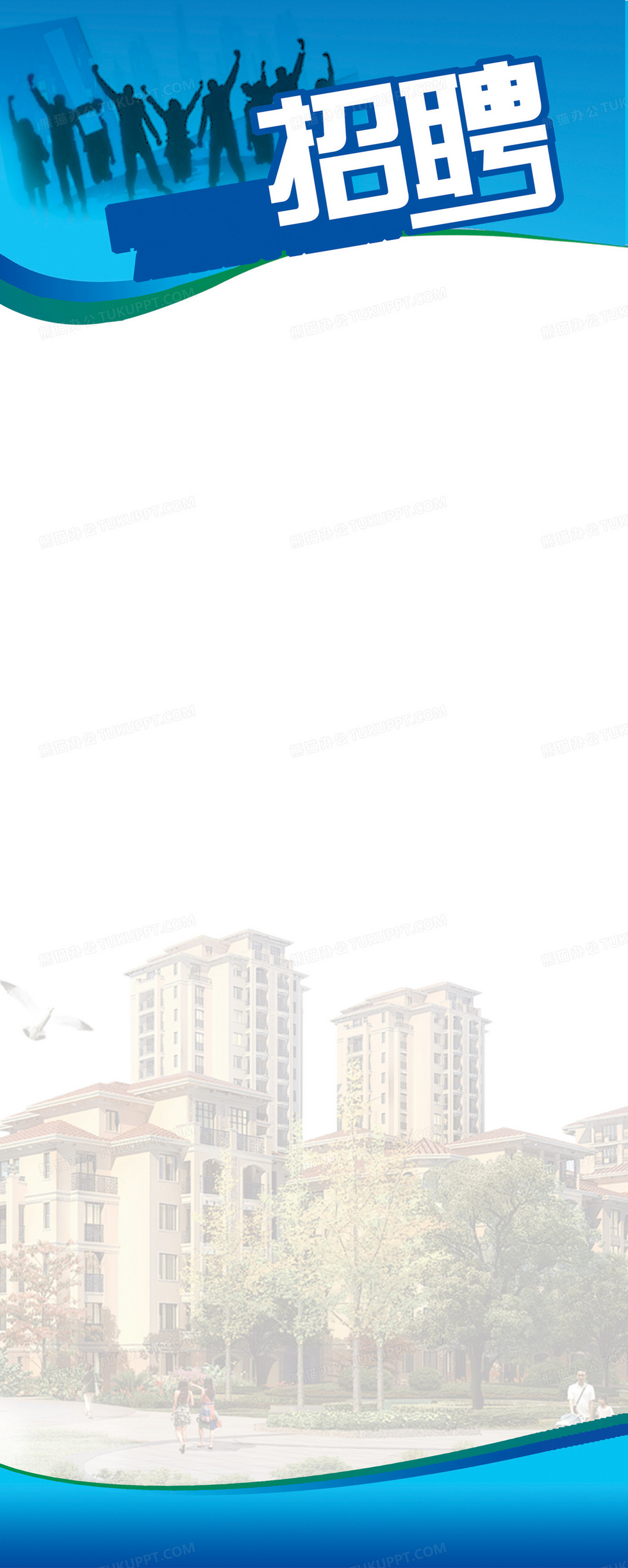 本作品内容为蓝色招聘展架背景, 格式为 psd, 图片尺寸为2268 x 5669, 作品中背景图片无需修改, 源文件无水印,可以直接使用, 欢迎使用熊猫办公。 如认为平台内容涉嫌侵权,可通过邮件:tousu@tukuppt.com提出书面通知,我们将及时处理。