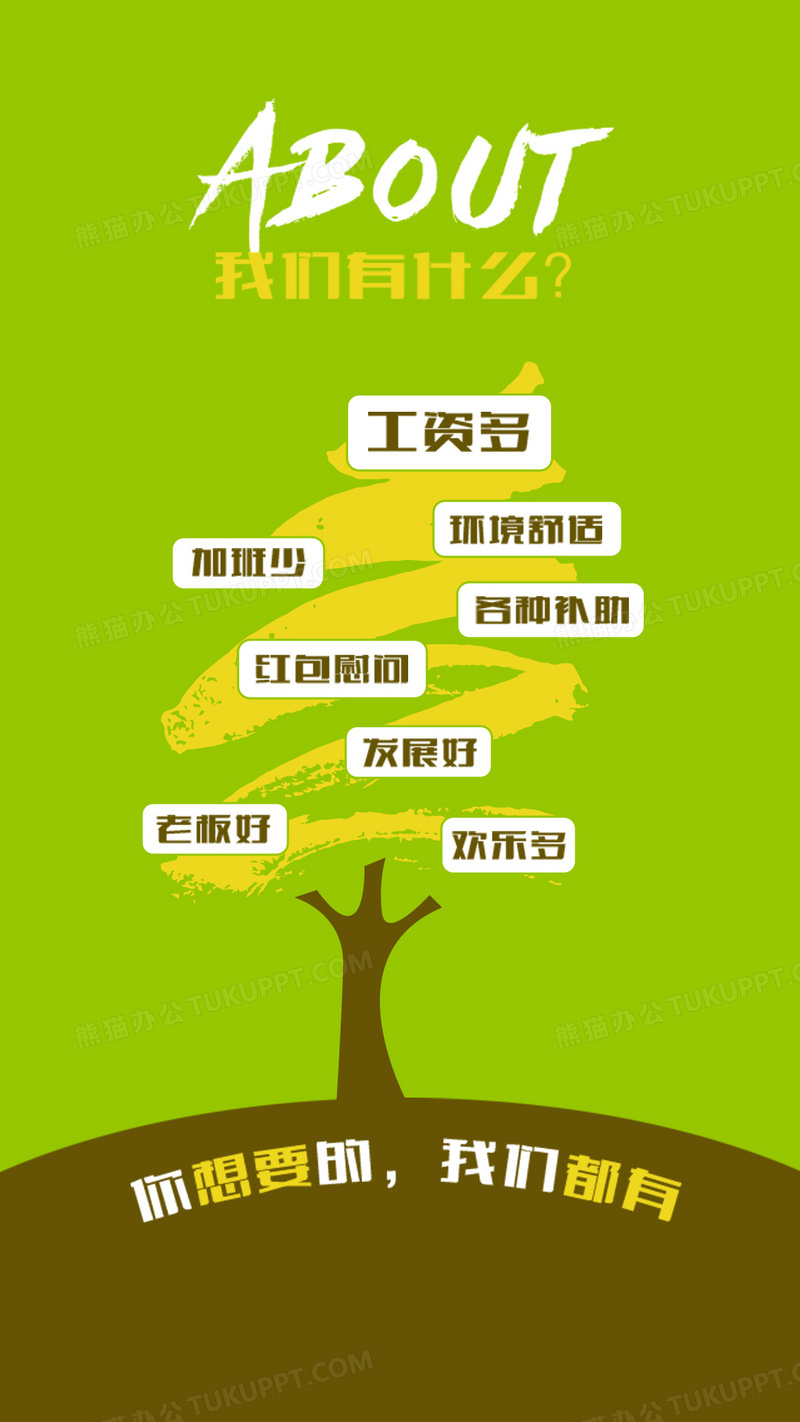 本作品内容为招聘H5免费下载, 格式为 psd, 图片尺寸为1080 x 1920, 作品中背景图片无需修改, 源文件无水印,可以直接使用, 欢迎使用熊猫办公。 如认为平台内容涉嫌侵权,可通过邮件:tousu@tukuppt.com提出书面通知,我们将及时处理。