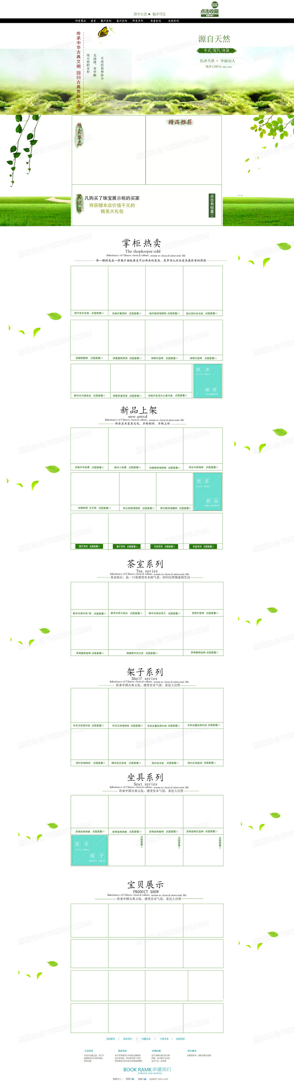 本作品内容为绿色天然家居用品店铺首页背景, 格式为 psd, 图片尺寸为1920 x 7087, 作品中背景图片无需修改, 源文件无水印,可以直接使用, 欢迎使用熊猫办公。 如认为平台内容涉嫌侵权,可通过邮件:tousu@tukuppt.com提出书面通知,我们将及时处理。