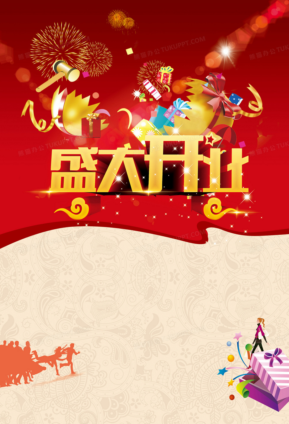 本作品内容为盛大开业海报背景素材, 格式为 psd, 图片尺寸为3437 x 5032, 作品中背景图片无需修改, 源文件无水印,可以直接使用, 欢迎使用熊猫办公。 如认为平台内容涉嫌侵权,可通过邮件:tousu@tukuppt.com提出书面通知,我们将及时处理。