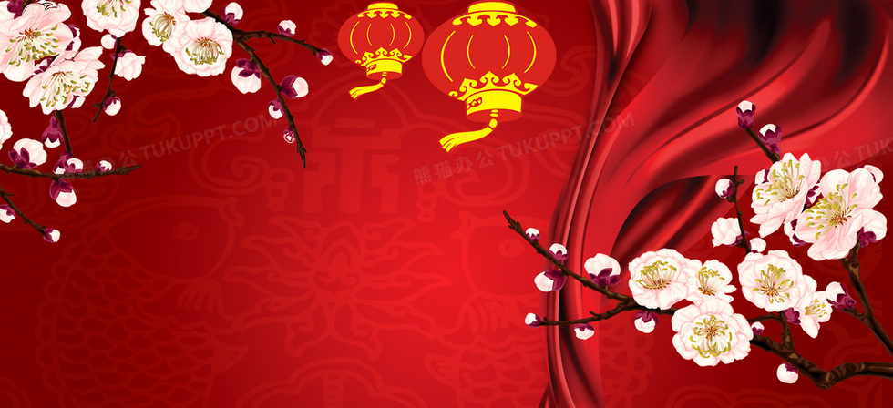 本作品内容为中国风大气红色喜庆新年背景banner, 格式为 psd, 图片尺寸为1920 x 876, 作品中背景图片无需修改, 源文件无水印,可以直接使用, 欢迎使用熊猫办公。 如认为平台内容涉嫌侵权,可通过邮件:tousu@tukuppt.com提出书面通知,我们将及时处理。