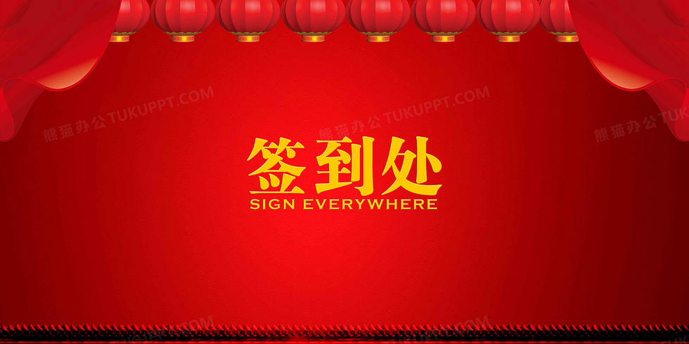 本作品内容为喜庆中国红签到墙海报背景展板, 格式为 psd, 图片尺寸为7087 x 3543, 作品中背景图片无需修改, 源文件无水印,可以直接使用, 欢迎使用熊猫办公。 如认为平台内容涉嫌侵权,可通过邮件:tousu@tukuppt.com提出书面通知,我们将及时处理。
