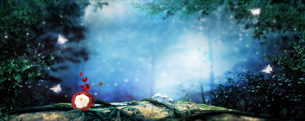 本作品内容为森林夜晚梦幻海报背景, 格式为 psd, 图片尺寸为1920 x 765, 作品中背景图片无需修改, 源文件无水印,可以直接使用, 欢迎使用熊猫办公。 如认为平台内容涉嫌侵权,可通过邮件:tousu@tukuppt.com提出书面通知,我们将及时处理。