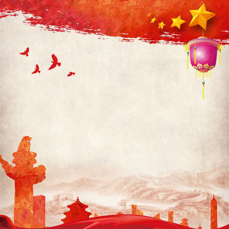 本作品内容为红色国庆主图, 格式为 psd, 图片尺寸为800 x 800, 作品中背景图片无需修改, 源文件无水印,可以直接使用, 欢迎使用熊猫办公。 如认为平台内容涉嫌侵权,可通过邮件:tousu@tukuppt.com提出书面通知,我们将及时处理。