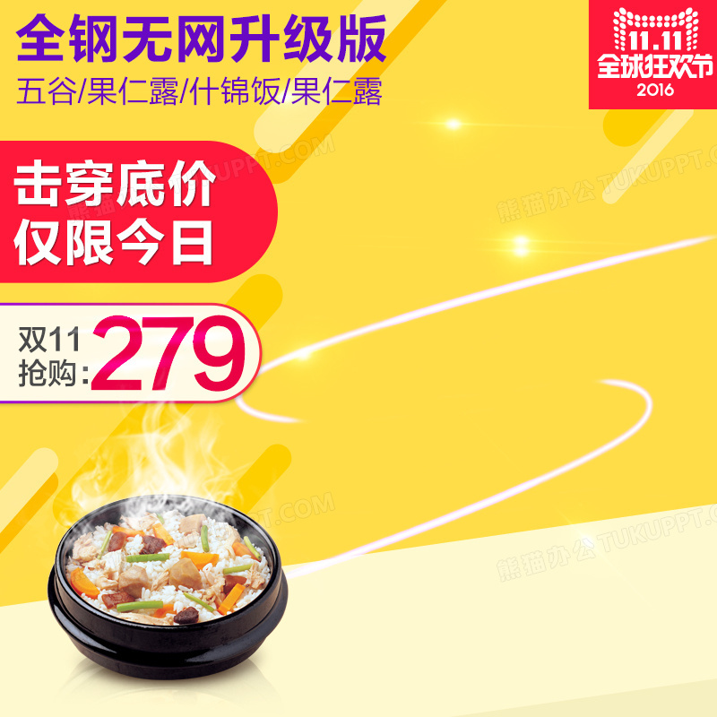 本作品内容为黄色双11料理机主图, 格式为 psd, 图片尺寸为800 x 800, 作品中背景图片无需修改, 源文件无水印,可以直接使用, 欢迎使用熊猫办公。 如认为平台内容涉嫌侵权,可通过邮件:tousu@tukuppt.com提出书面通知,我们将及时处理。