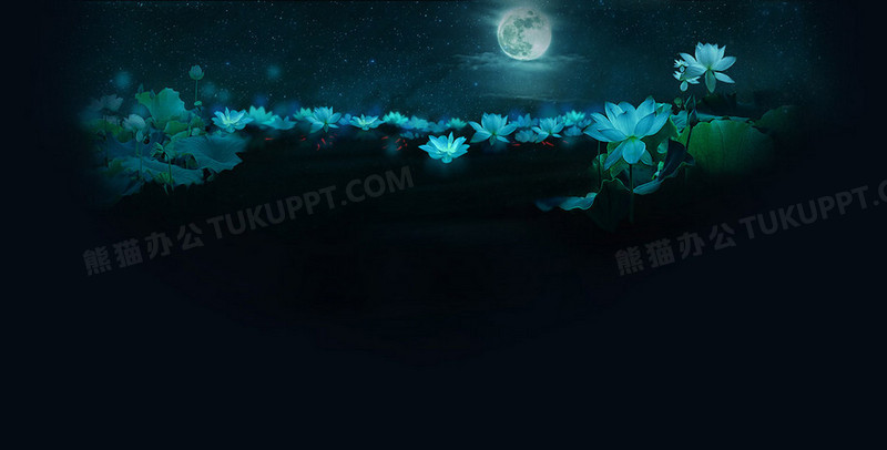 本作品内容为荷塘夜色背景, 格式为 jpg, 图片尺寸为950 x 482, 作品中背景图片无需修改, 源文件无水印,可以直接使用, 欢迎使用熊猫办公。 如认为平台内容涉嫌侵权,可通过邮件:tousu@tukuppt.com提出书面通知,我们将及时处理。