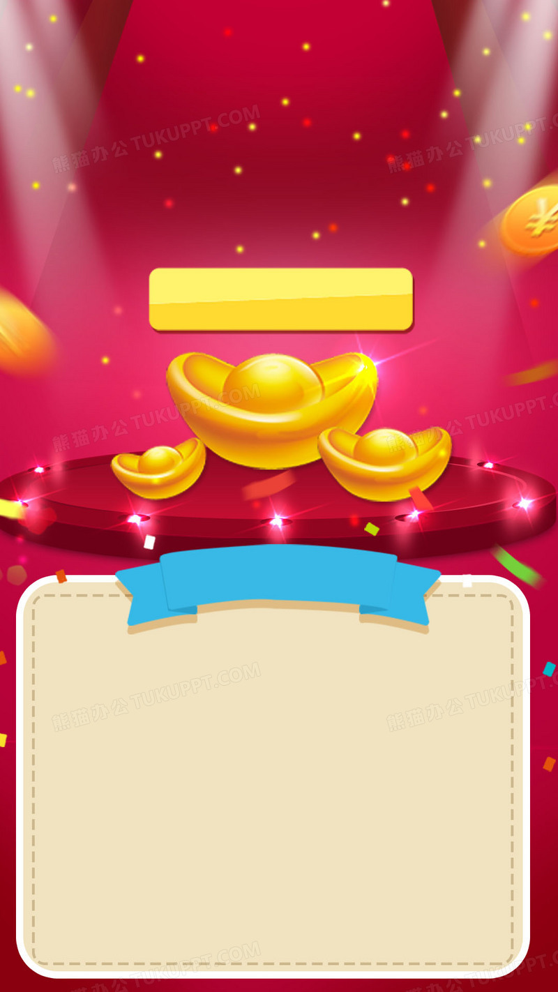 本作品内容为年货节红包派送元宝H5背景, 格式为 psd, 图片尺寸为1080 x 1920, 作品中背景图片无需修改, 源文件无水印,可以直接使用, 欢迎使用熊猫办公。 如认为平台内容涉嫌侵权,可通过邮件:tousu@tukuppt.com提出书面通知,我们将及时处理。