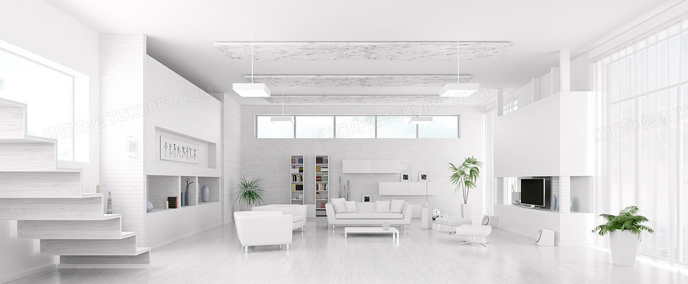 本作品内容为家居白色简约客厅楼梯背景素材, 格式为 jpg, 图片尺寸为7500 x 3100, 作品中背景图片无需修改, 源文件无水印,可以直接使用, 欢迎使用熊猫办公。 如认为平台内容涉嫌侵权,可通过邮件:tousu@tukuppt.com提出书面通知,我们将及时处理。