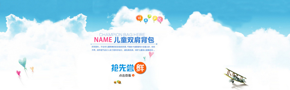 本作品内容为小清新卡通童趣儿童双肩背包banner, 格式为 psd, 图片尺寸为1920 x 600, 作品中背景图片无需修改, 源文件无水印,可以直接使用, 欢迎使用熊猫办公。 如认为平台内容涉嫌侵权,可通过邮件:tousu@tukuppt.com提出书面通知,我们将及时处理。