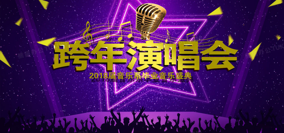 本作品内容为时尚跨年演唱会海报, 格式为 psd, 图片尺寸为1920 x 900, 作品中背景图片无需修改, 源文件无水印,可以直接使用, 欢迎使用熊猫办公。 如认为平台内容涉嫌侵权,可通过邮件:tousu@tukuppt.com提出书面通知,我们将及时处理。