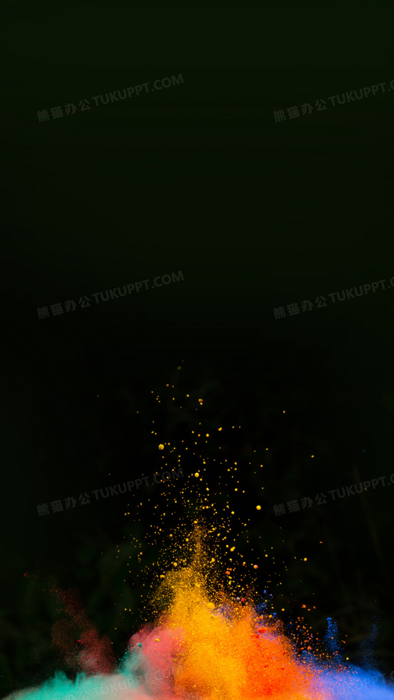 本作品内容为彩色粉末黑色背景, 格式为 jpg, 图片尺寸为1080 x 1920, 作品中背景图片无需修改, 源文件无水印,可以直接使用, 欢迎使用熊猫办公。 如认为平台内容涉嫌侵权,可通过邮件:tousu@tukuppt.com提出书面通知,我们将及时处理。