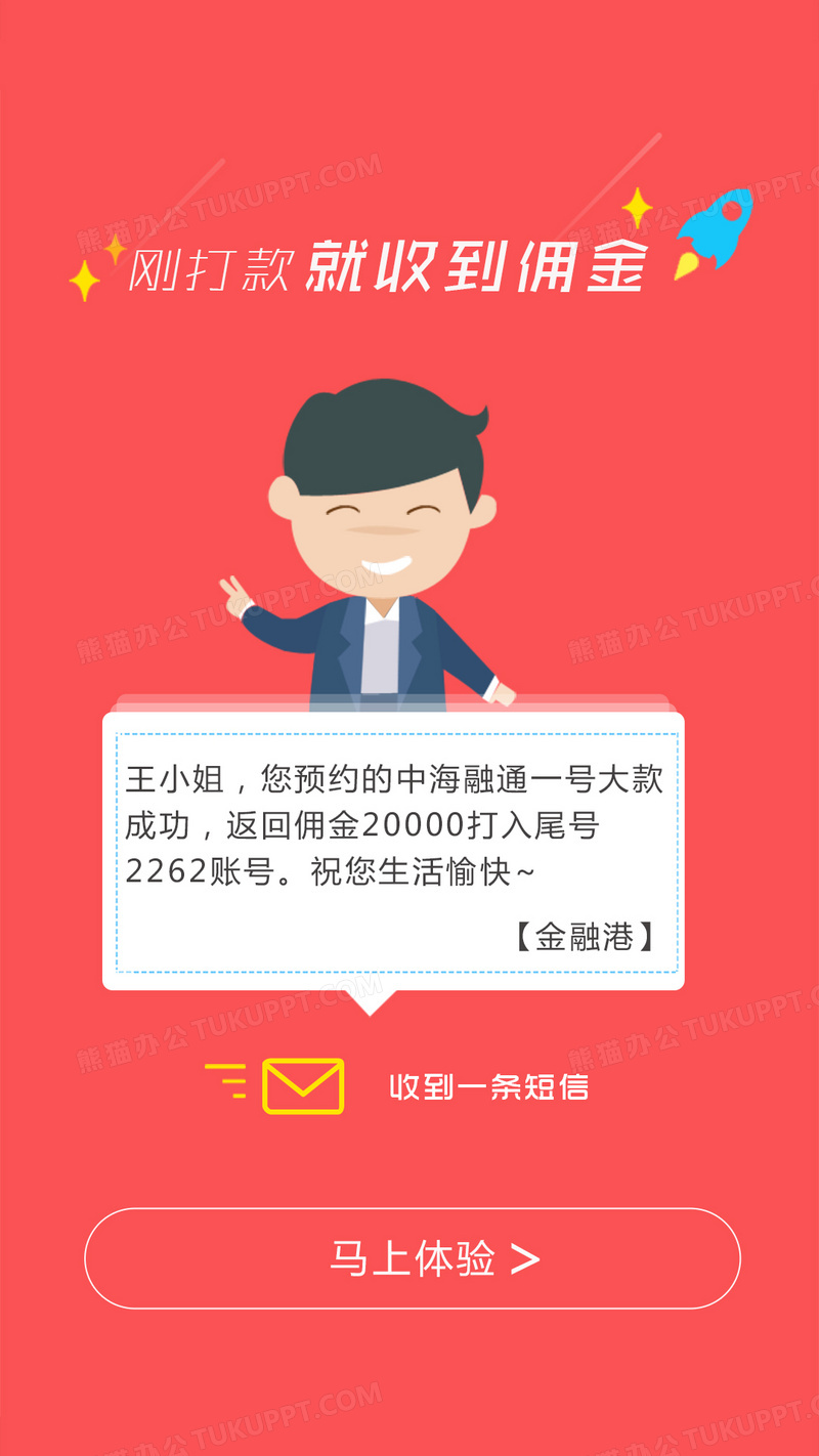 本作品内容为APP引导体验界面图片, 格式为 psd, 图片尺寸为1080 x 1920, 作品中背景图片无需修改, 源文件无水印,可以直接使用, 欢迎使用熊猫办公。 如认为平台内容涉嫌侵权,可通过邮件:tousu@tukuppt.com提出书面通知,我们将及时处理。