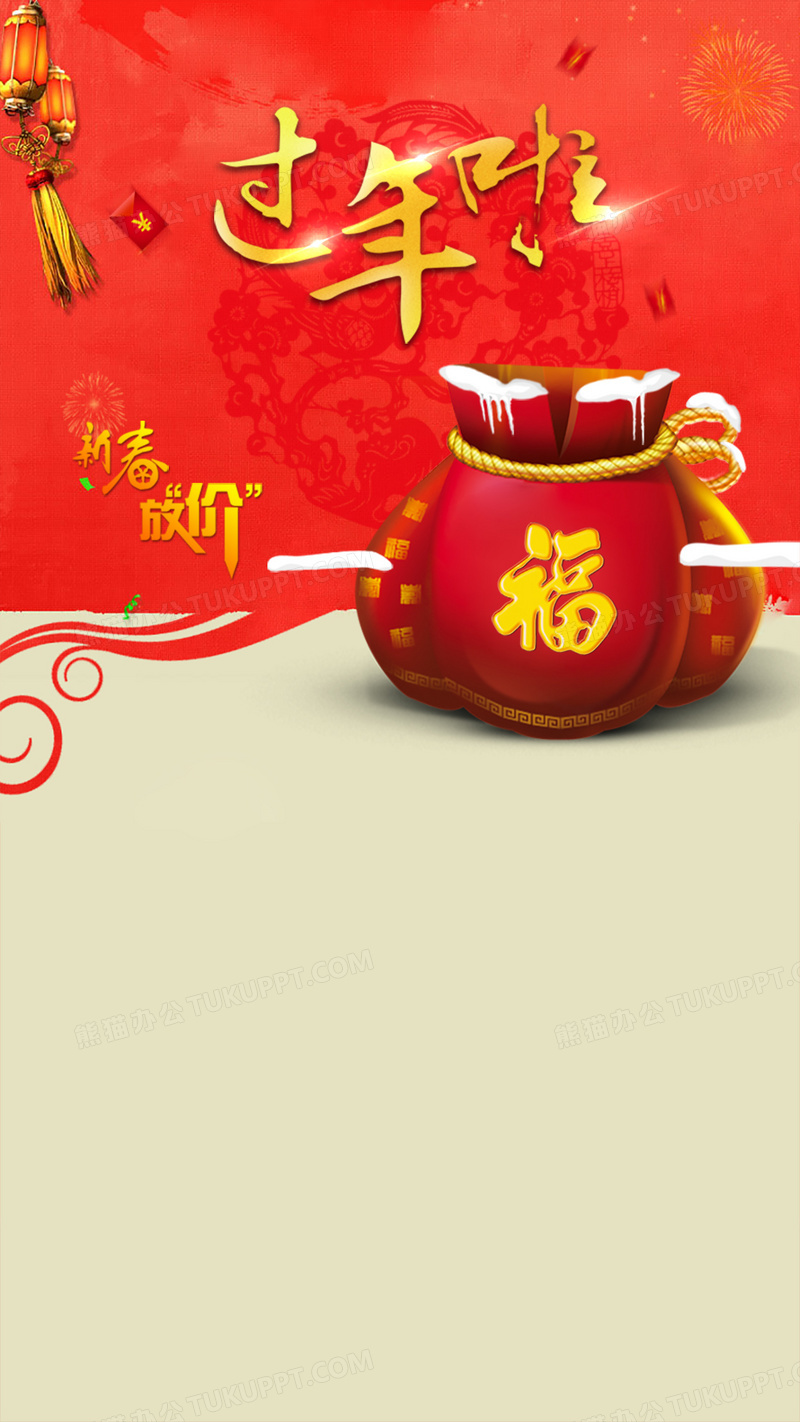 本作品内容为过年啦促销狂欢H5背景, 格式为 psd, 图片尺寸为1080 x 1920, 作品中背景图片无需修改, 源文件无水印,可以直接使用, 欢迎使用熊猫办公。 如认为平台内容涉嫌侵权,可通过邮件:tousu@tukuppt.com提出书面通知,我们将及时处理。