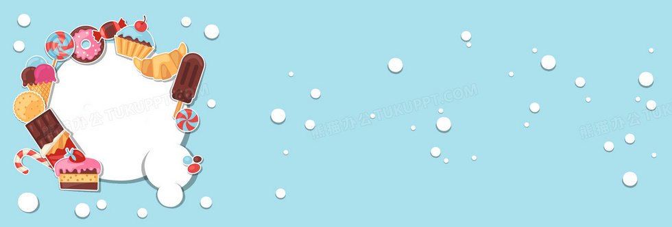 本作品内容为零食甜品卡通扁平蓝色背景, 格式为 psd, 图片尺寸为1920 x 650, 作品中背景图片无需修改, 源文件无水印,可以直接使用, 欢迎使用熊猫办公。 如认为平台内容涉嫌侵权,可通过邮件:tousu@tukuppt.com提出书面通知,我们将及时处理。