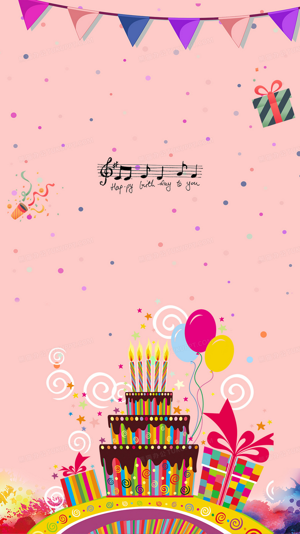 本作品内容为卡通粉色生日蛋糕彩旗H5背景素材, 格式为 psd, 图片尺寸为1242 x 2208, 作品中背景图片无需修改, 源文件无水印,可以直接使用, 欢迎使用熊猫办公。 如认为平台内容涉嫌侵权,可通过邮件:tousu@tukuppt.com提出书面通知,我们将及时处理。