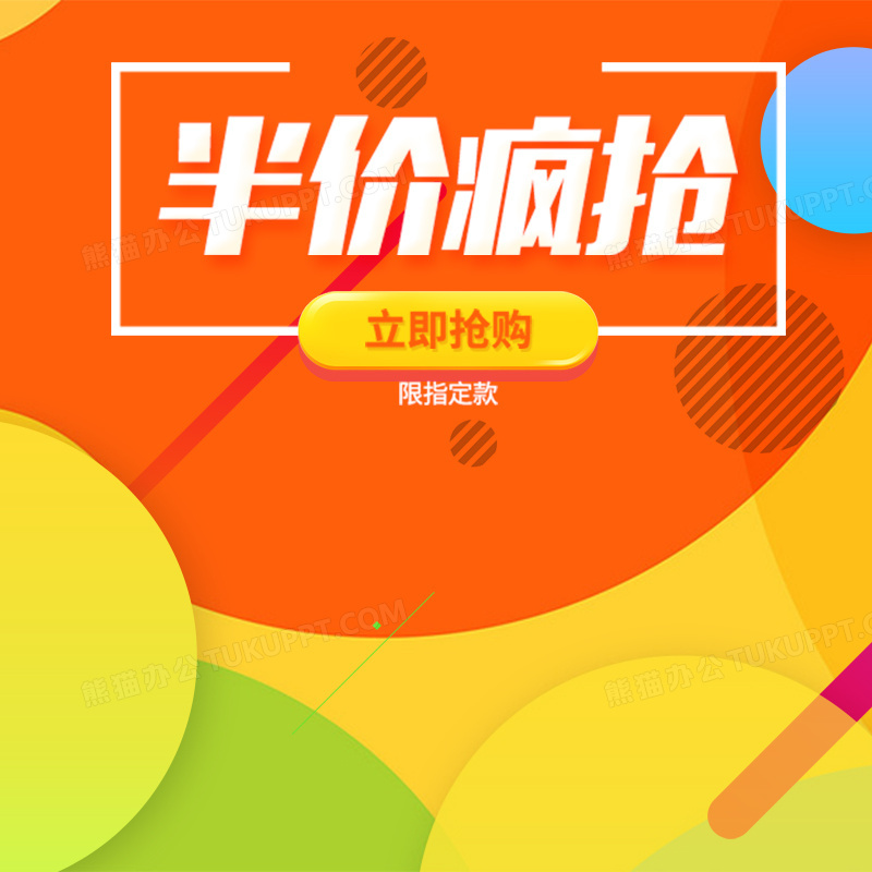 本作品内容为半价疯抢几何促销PSD分层主图背景素材, 格式为 psd, 图片尺寸为800 x 800, 作品中背景图片无需修改, 源文件无水印,可以直接使用, 欢迎使用熊猫办公。 如认为平台内容涉嫌侵权,可通过邮件:tousu@tukuppt.com提出书面通知,我们将及时处理。