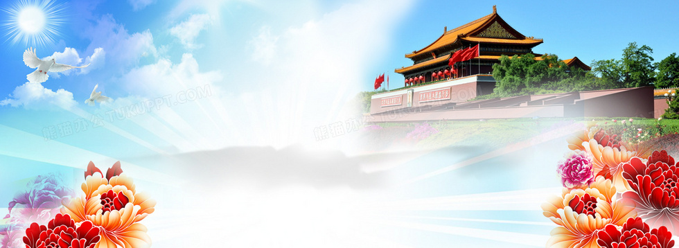 本作品内容为天安门唯美白云国庆促销背景, 格式为 psd, 图片尺寸为1920 x 700, 作品中背景图片无需修改, 源文件无水印,可以直接使用, 欢迎使用熊猫办公。 如认为平台内容涉嫌侵权,可通过邮件:tousu@tukuppt.com提出书面通知,我们将及时处理。