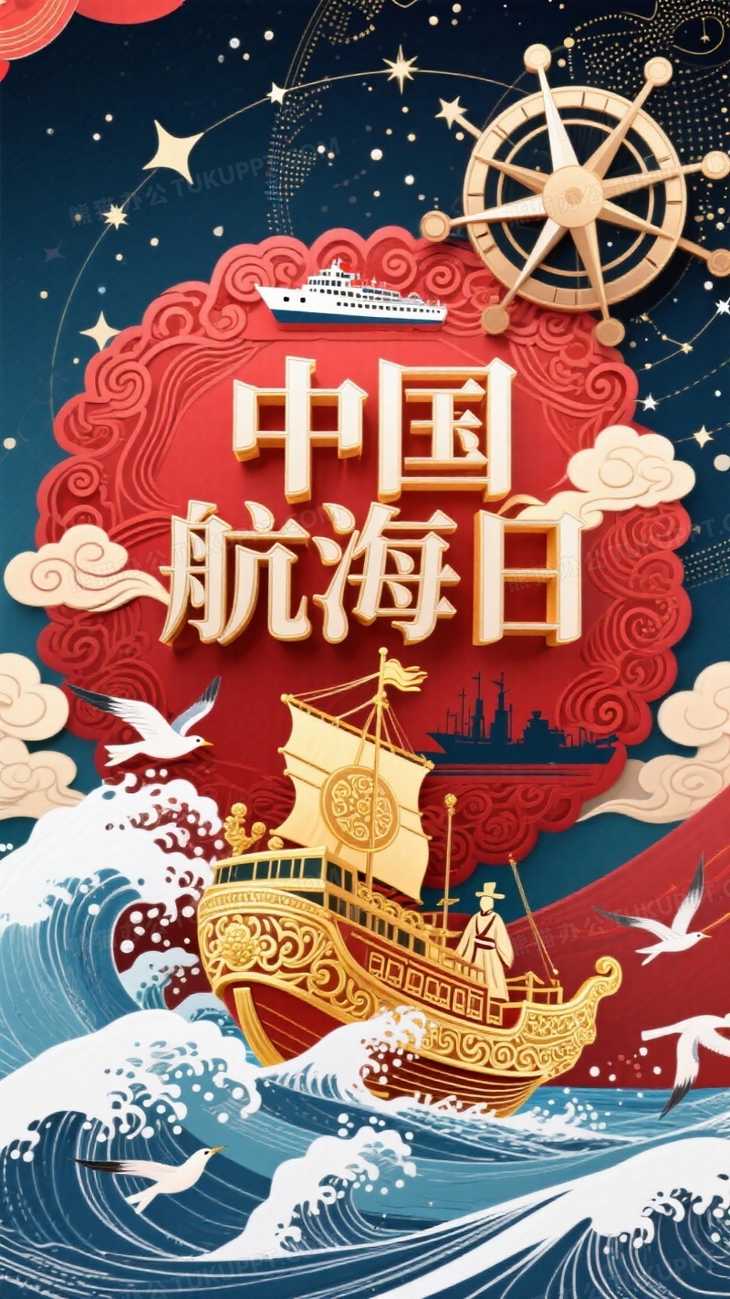 本作品内容为中国航海日国潮风格海报, 格式为 jpg, 大小1 MB, 图片尺寸为936 x 1664, 源文件无水印, 欢迎使用熊猫办公。 如认为平台内容涉嫌侵权,可通过邮件:tousu@tukuppt.com提出书面通知,我们将及时处理。