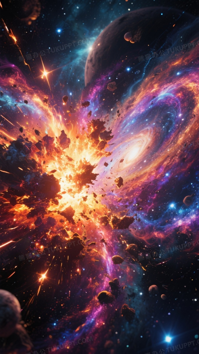 本作品内容为一幅展现星系碰撞场景的画面, 格式为 jpg, 大小1 MB, 图片尺寸为936 x 1664, 源文件无水印, 欢迎使用熊猫办公。 如认为平台内容涉嫌侵权,可通过邮件:tousu@tukuppt.com提出书面通知,我们将及时处理。