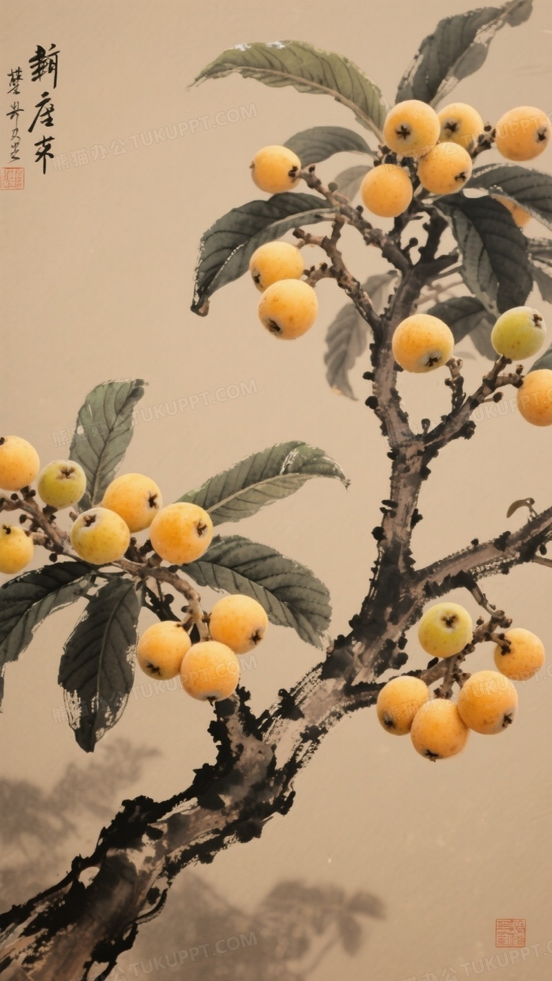 本作品内容为背景淡咖水墨枇杷树的枝头结满金黄色果子, 格式为 jpg, 大小1 MB, 图片尺寸为936 x 1664, 源文件无水印, 欢迎使用熊猫办公。 如认为平台内容涉嫌侵权,可通过邮件:tousu@tukuppt.com提出书面通知,我们将及时处理。