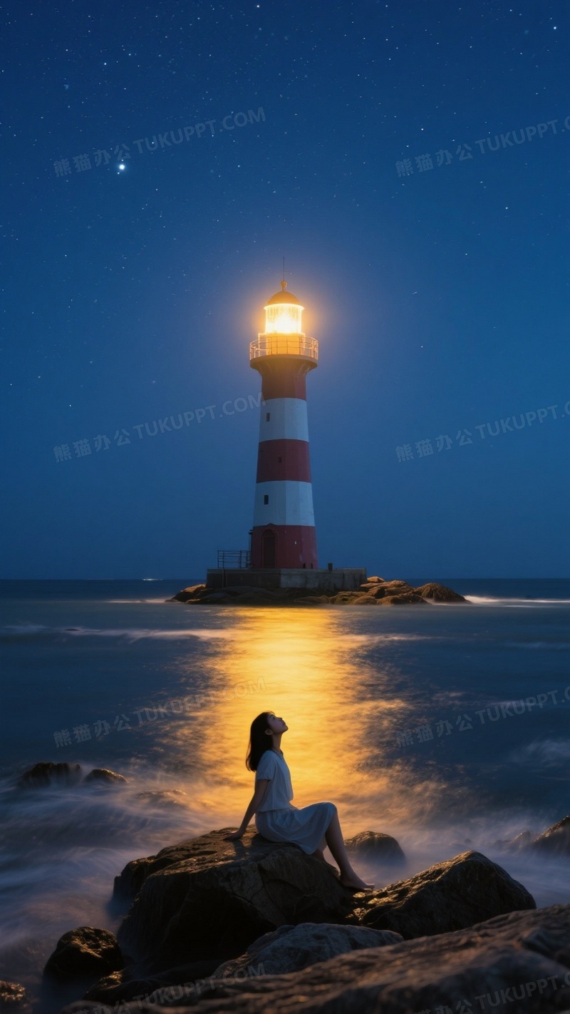 本作品内容为夜晚灯塔闪烁着光芒少女坐在灯塔下方的礁石上, 格式为 jpg, 大小1 MB, 图片尺寸为936 x 1664, 源文件无水印, 欢迎使用熊猫办公。 如认为平台内容涉嫌侵权,可通过邮件:tousu@tukuppt.com提出书面通知,我们将及时处理。