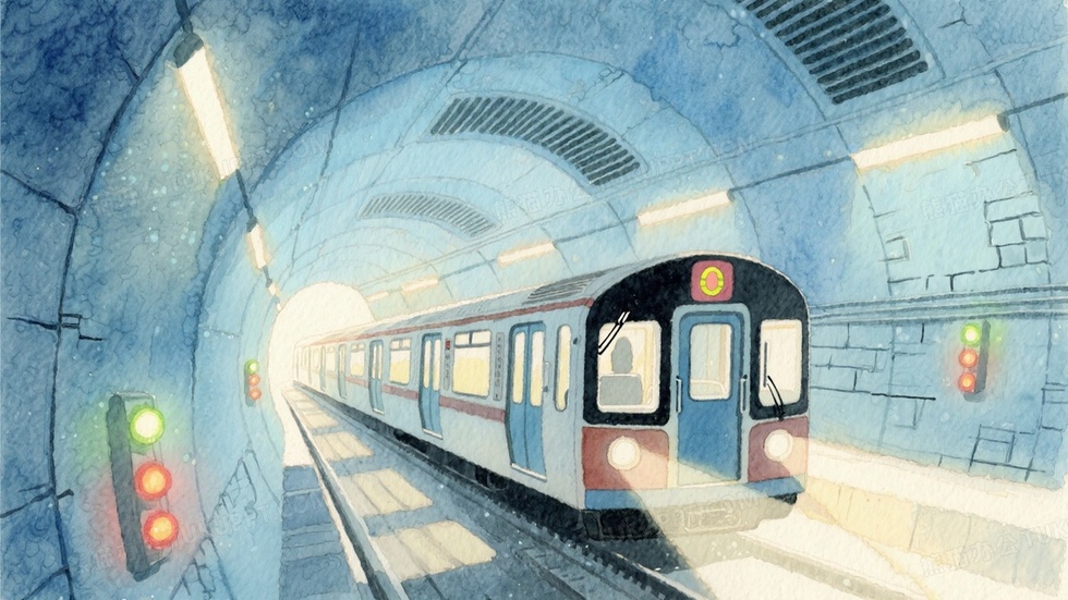 首页 > 插画 > 科技艺术 > 水彩手绘 > 好看的高清插画地铁地铁在隧道中疾驰